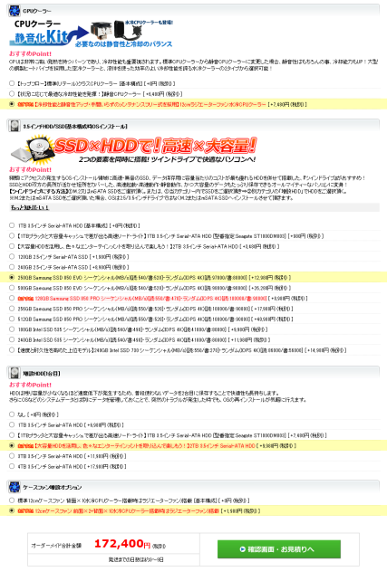 どういう構成にしようかな…と選んでいるのも楽しいのだが、逆に多すぎてどうしよう、という贅沢な悩みに陥ってしまうのも、BTOの魅力といえば魅力ではある。