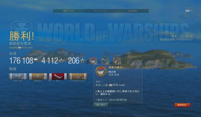 最後は一斉に襲いかかられたら間違いなく負けていた戦いだが、低Tierということもあって敵も協調プレーではなく各個突撃してきたのでどうにか4隻沈めて勝つことが出来た。