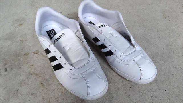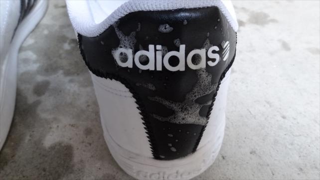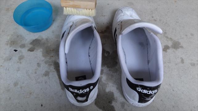 ひとまず全体をこすったので、こちらも同じように泡を布で拭き取って、数時間ほど陰干しします。泡立てましたが、水はあまり使わなかったので、革靴を洗い終わる頃にはもうすでにスニーカーはほぼ乾いていました。この速乾性はいいですね!