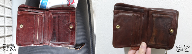革の財布を洗ってみました。吉田カバン(PORTER)のSOAKシリーズの財布です。素材は牛ステア(ベジタブルタンニン鞣し)と豚革。