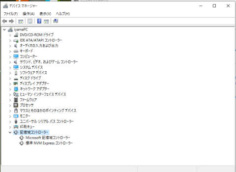 Windows10のデバイスマネージャーで確認したところ、記憶域コントローラーで認識しています。