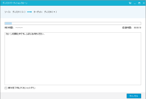 HDDが約200GBを利用していました。それで約38分ほどかかりました。
