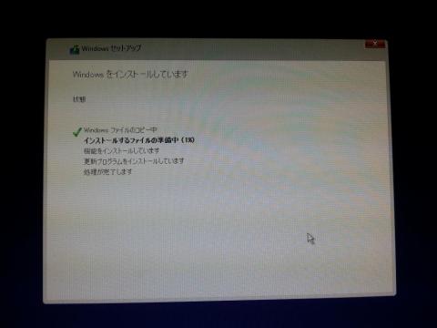 無事インストールが開始されました。30分程度でインストールが完了しました。