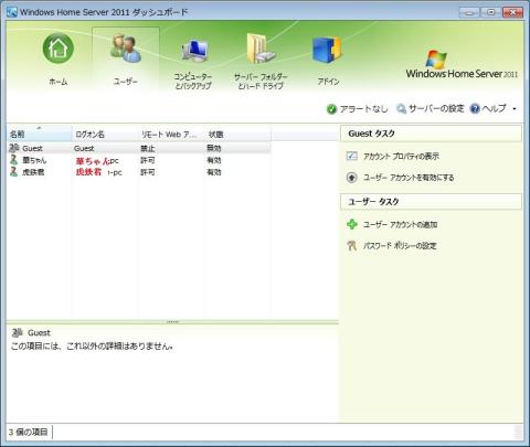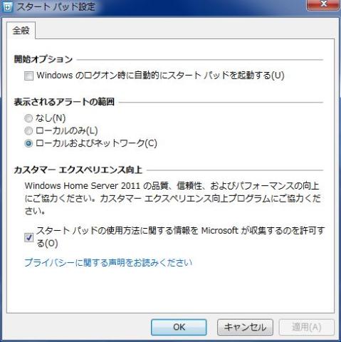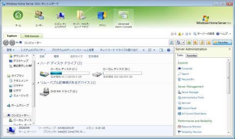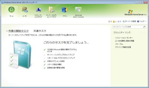 旧WHSと違い下記で説明しているスタートパッドやダッシュボードを