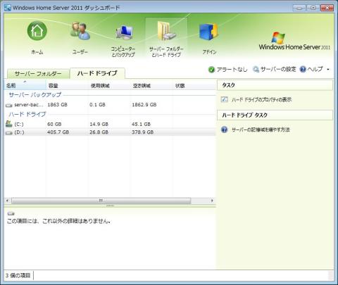 また使用上WHS2011でバックアップできる領域の大きさは1つ2TBまでと