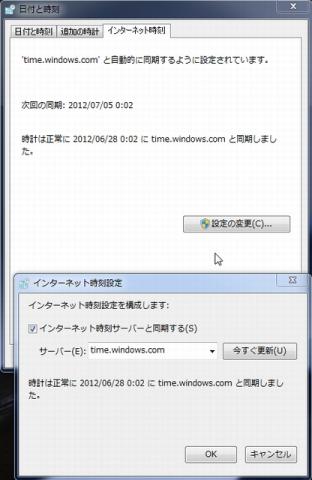 インターネット時刻サーバーとの同期が同じサーバーと行っているか?