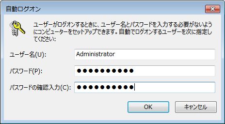 ※ここで、普段パスワードを設定していない方やオートログオンの設定をしている方は