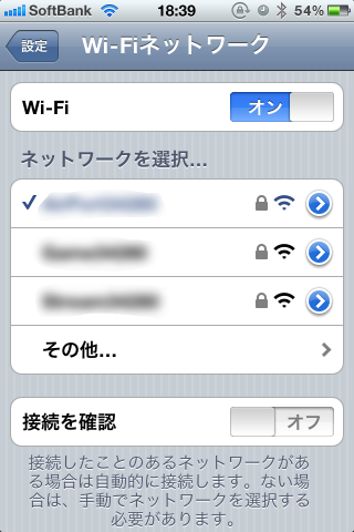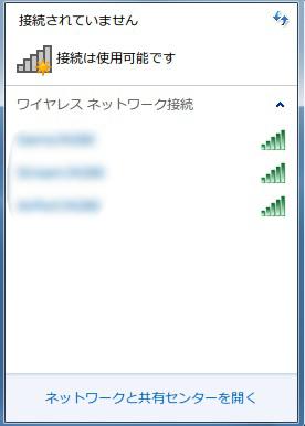 「ワイヤレス ネットワーク接続」から、さきほど撮影したコーションラベルのSSIDを選択、暗号キーを求められたら同じくコーションラベルのキーを入力して完了です。