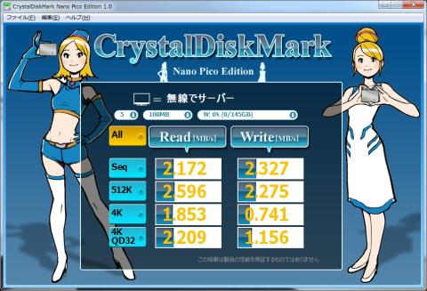 参考までに、Gigabit接続でサーバーのHDDへとアクセスしてみました。