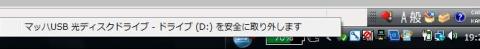 タスクバーにマッハUSB for BD/DVD有効が表示される。