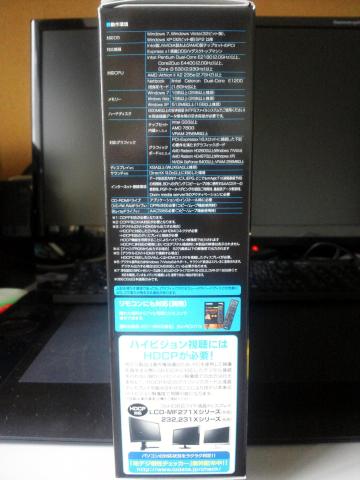 左側面には、動作環境が記載されています。やはり、HD映像を扱うだけあり最低条件が2コア以上かつ2GHz以上の動作をするCPUが要求されています。低負荷動作でもCeleronDual-Core1.6GHz以上が要求されています。