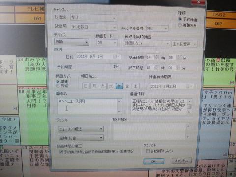 予約する際は、予約したい番組枠で右クリックし予約を選択すればこのような画面が出てきて設定ができます。
