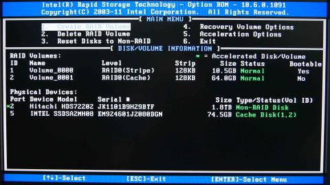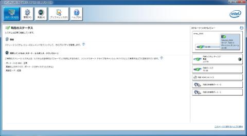 念のため、「インテル ラビット・ストレージ・テクノロジー」を起動して設定を確認すると、
