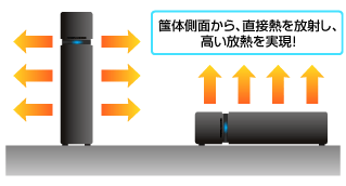 静音設計に加え従来の放熱方式を刷新、独自の熱拡散放熱方式を採用したファンレス仕様。