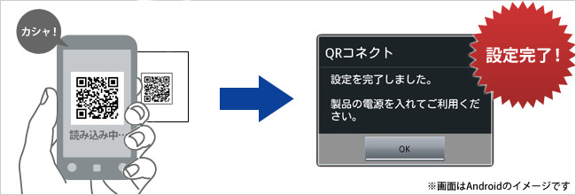 面倒な初期設定も、スマートフォン用に最適化されたインターネット設定画面を使えばパソコンを使用しなくても簡単に行うことができるほか、スマートフォンを無線LANに接続する時には無料の専用アプリ「QRコネクト」(Android用、iPhone用/ダウンロードが必要)が用意されていて、製品に貼付されているQRコードを読み取るだけで誰でも間違わず、簡単&確実に設定することができるので便利だ。