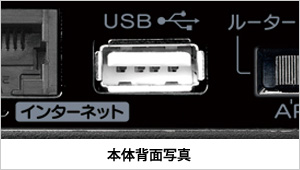本体背面にUSBポートを備えていて、USB接続のプリンターやハードディスクなどを繋げばネットワーク内で共有することができるのも特長の一つ。