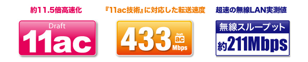 『11ac技術』に対応したスマホやタブレットなどの製品が今後続々と登場する予定で、今まさにオススメの製品です。