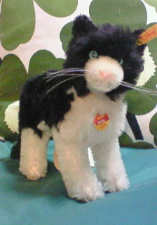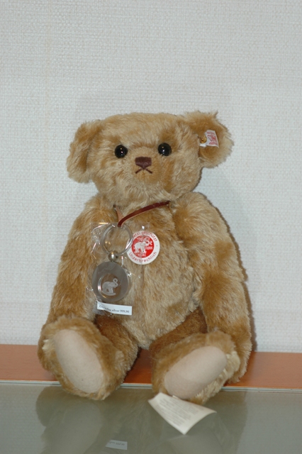 「シュタイフ社」のテディベアの特徴は品質と安全にこだわった素材と、大量生産ではなく一体ずつ職人が丁寧に作り上げる手作りの優しさ。同じ型のぬいぐるみでも、微妙にその表情が違って見えるところが愛好家にとってはまた魅力なのだろう。トレードマークは左耳に付けられたボタンとタグ。1903年にアメリカで大流行した際に、あまりに類似品が出回ったために付けられたのが最初だとか。「ボタン イン イヤー」と呼ばれるこの左耳のボタンは、今では「シュタイフ社」を表すトレードマークとして、テディベア以外の他の動物のぬいぐるみにも付けられている。