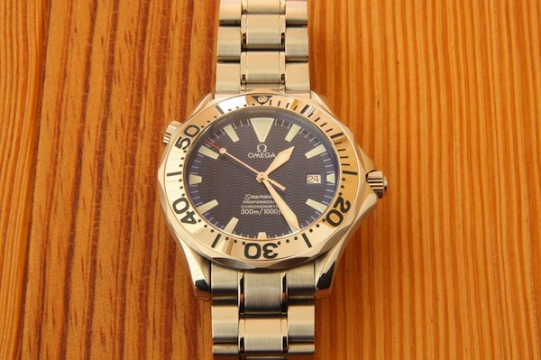 やりくりさんとみっちゃんさんの「シーマスター」は型番こそ違うが300メートル防水の自動巻き。裏蓋とリューズにはスクリュー方式を採用し水の浸入をシャットアウト。10時の位置に付いているヘリウムエスケープバルブで時計内部の圧力調整して水圧からボディを守る。また風防には光の反射を抑えるサファイアクリスタルグラスを採用、文字盤と針には蛍光塗料が塗られているため、ほの暗い水中でも時間を読む事ができる。ちなみに文字盤を囲むベゼル部分は反時計回りにしか回らない。これはベゼルを使って酸素ボンベの残量を計算する際に、ベゼルがズレても致命的な事故を起こさないための配慮だ。