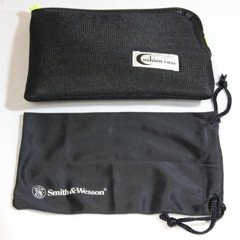 本品にはメガネ拭きにもなるマイクロファイバーソフトポーチ(画像下)が付いてくるのですが、今回購入したお店では汎用のクッションケース(画像上)を付けてくれました。