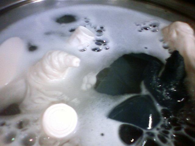 お湯で煮ます。ジョイが数滴はいってます。