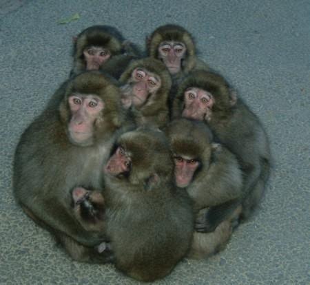 猿が寒いとき、一塊にあつまっている状態。