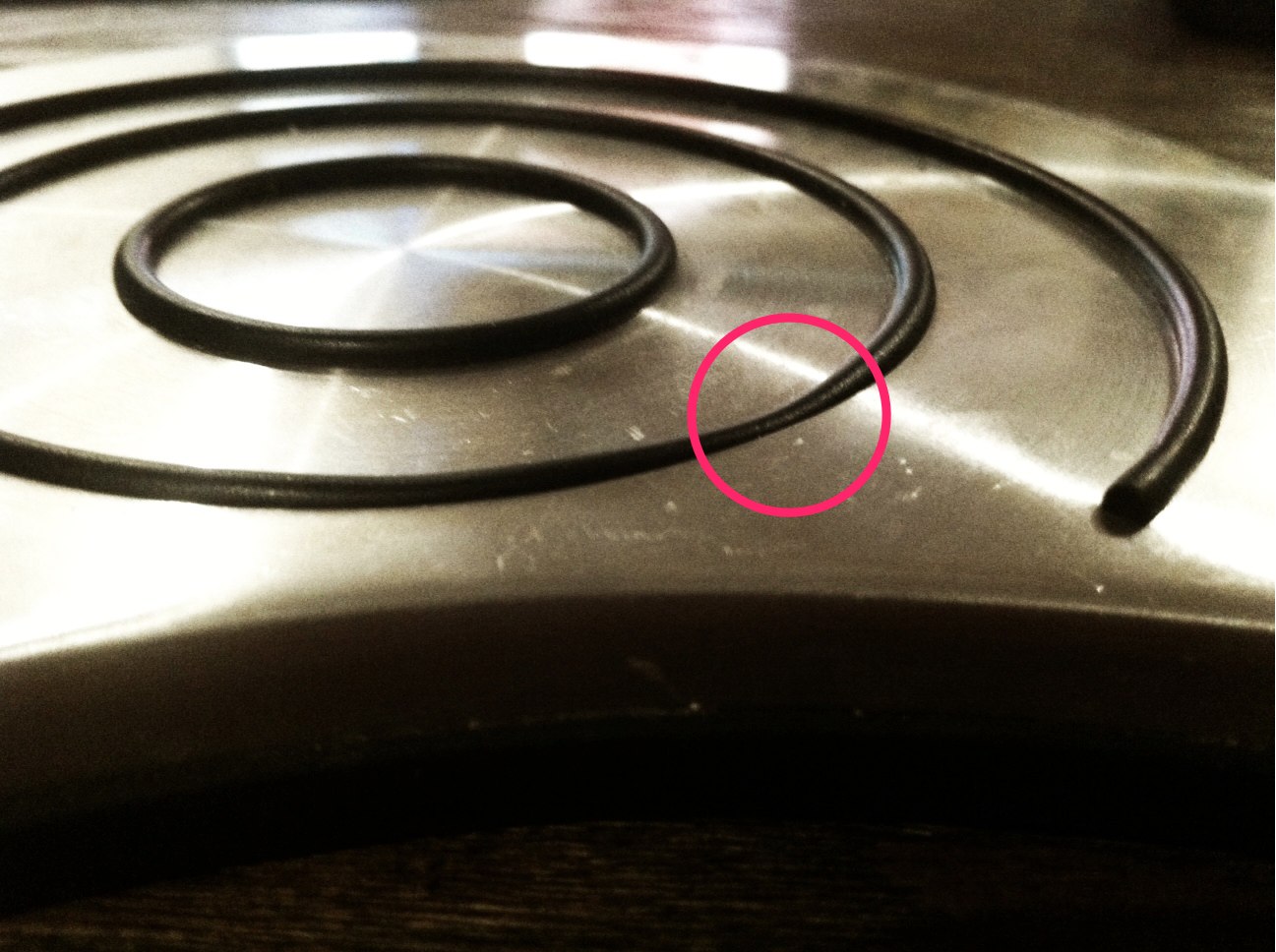 周りのステンレス部分を指で押すと、シリコンが浮き出てきます。