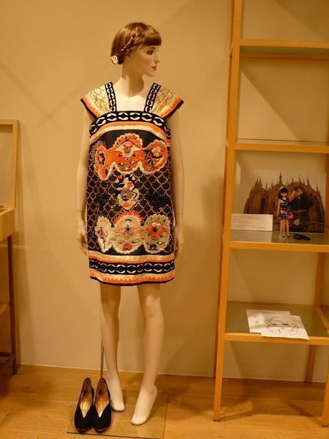 写真右:18万円の天女モチーフのドレス。絵はプリントではなく、刺繍でかなり凝ってるらしい。