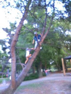 名物の木登り用の木。