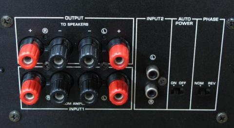 入力端子はスピーカー入力とピンジャック入力の2系統を搭載しており、スピーカー入力にはバナナプラグに対応した端子を採用しています。