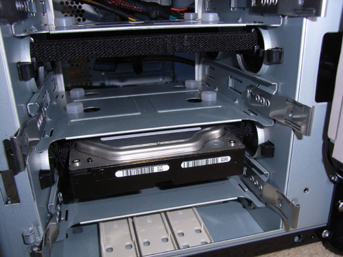 元々衝撃に弱いHDDをゴムバンドでつるすだけというのは心もとないし、後に自分でWhiteを使用した時は通常のトレー固定で十分静かだったので、普通はそちらで十分かもしれない。