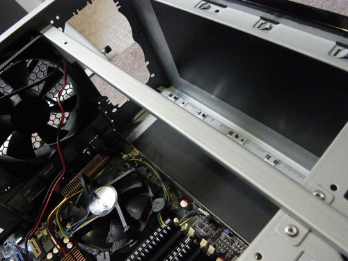 ここはおとなしくシャドーベイ前のフロントファン搭載部に吸気ファンをつけるのがいい。9cmファンを2個搭載可能になっている。