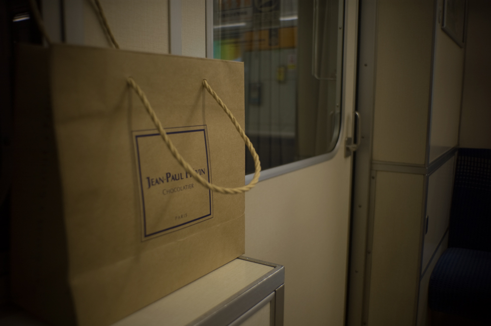 電車内、奥さんにおみやげ
