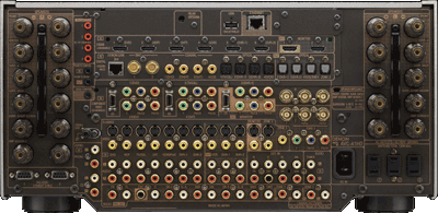 背面パネルの入力/出力端子の多さが機能の豊富さを示してます。