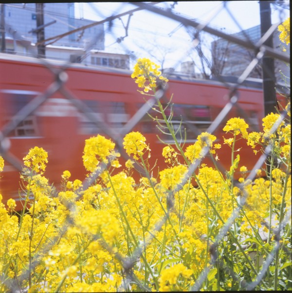 菜の花と中央線のはリバーサル、アヒルはカラーネガ、空を写しているのはモノクロネガから。