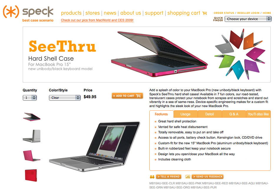そんな頼りない代理店に任せなくても,当のSpeckのサイトから