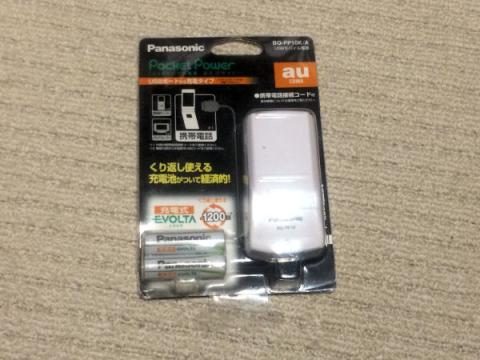 auのCDMA端末向け充電器と、単3形EVOLTA充電池2本のセット商品となっています。CDMA端末向け充電器といっても、実際のところはCDMA機器向けのケーブルが標準装備されているというだけであり、それ以外の機器には汎用のUSB対応ケーブルを利用することで充電できるというものですから、汎用性という意味でも申し分ありません。