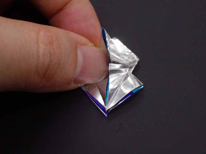それぞれの内側に割り込むように折り,ぴったり頂点を合わせます.