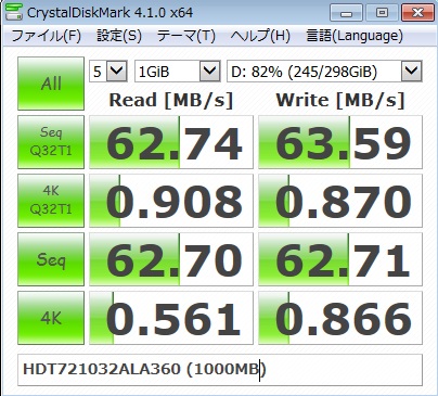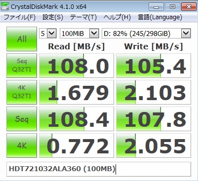 7200rpmとはいえ、SATA2の上にキャッシュは16MB。仕方ありません。