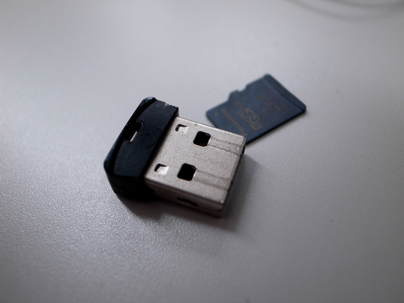 3年ほど前に買った、コンパクトなmicroSD専用リーダー/ライターです。キャップは既に失くなってしまいました^^;microSDカードがUSBコネクタに収...