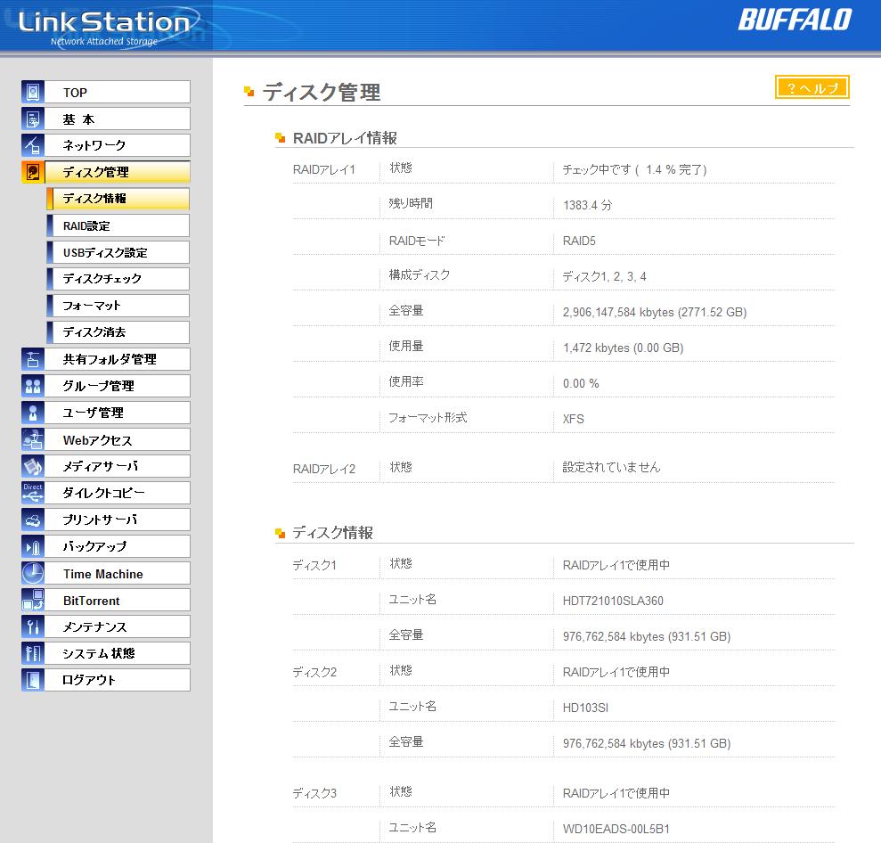やっと4本揃えました。raid5なので3TB、暫くもつかな。。