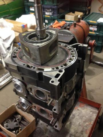 組み立て中の3ローター・ペリエンジン。ヨダレものです。