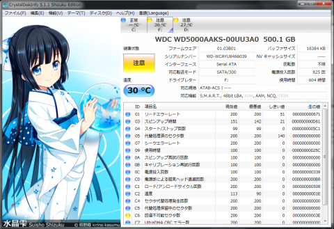 ただ、このWD5000AAKSというHDDはファームウェアが弱いらしく、それが原因で、ファームウェアが消失したりする可能性もあるということなので、しばらく様子を見ながら使っていきたいと思います。