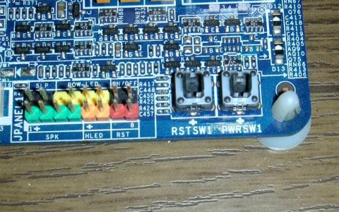 廉価とは言え、BIOSTARにしては高級モデルのようで、電源やリセットスイッチがオンボードで搭載されています。フロントピンヘッダも色分けされていて非常に判り易いです。
