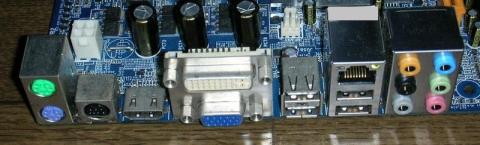 PS/2×2、VGA+DVI+HDMI+S-Video、USB2.0×4、LAN、アナログ音声×3