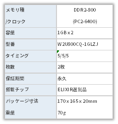 当時のDDR2メモリーとしては標準的なスピードの仕様です。容量は普通かちょっと足りないくらい。