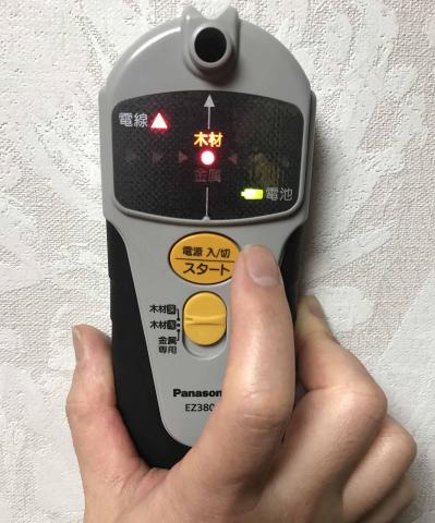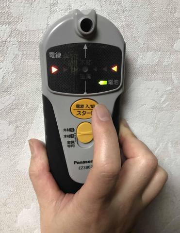 入れたら対象の壁の上でもう一度電源ボタンを軽く押して測定スタート