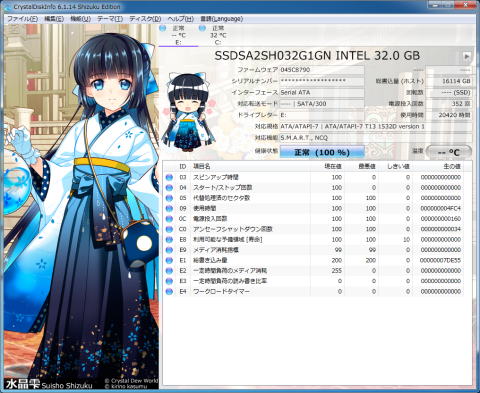 総書き込み量が16114GBと、データ書き込みサイクルが503周とまぁ酷い。