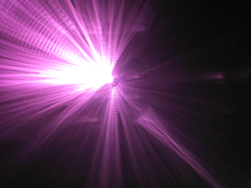 ちなみに、撮影に使っているケータイでは、この波長の光を見ることができるようです。部屋を暗くしてレーザーを覗くように撮影したのが2枚目です。