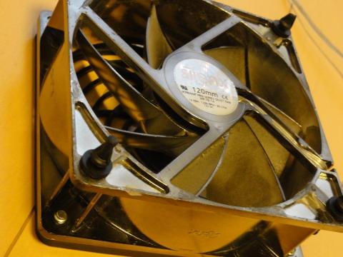 ファンの設置部分もシリコンシートで防振対策を!(ファンの埃は5年分だい!)